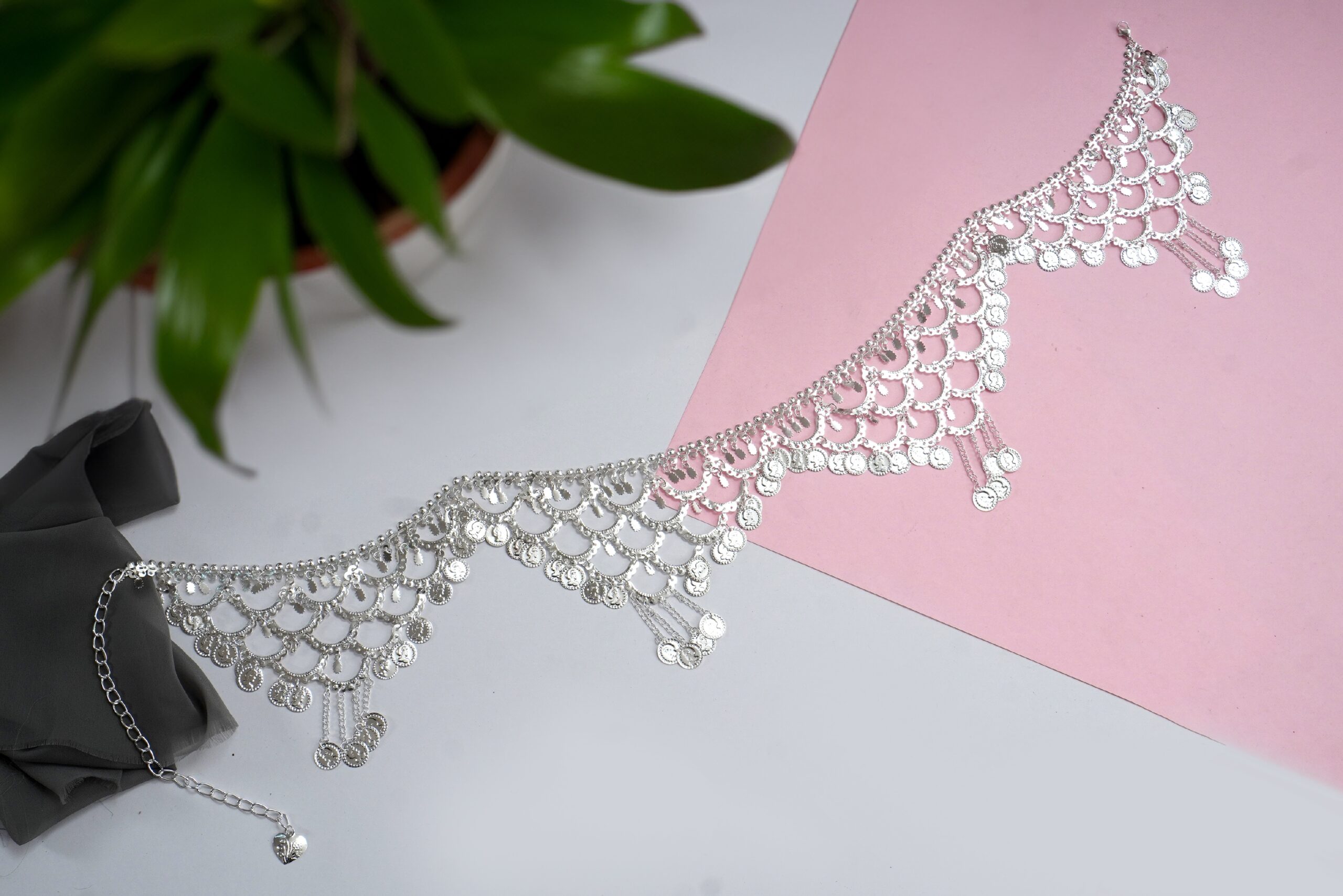 The fine silver chain that joins the triangles can be plated with rhodium or oxidized silver, which gives the item a glossy, long-lasting appearance. Various waist sizes can be comfortably accommodated by the adjustable design, which enables it to be worn securely or loosely, depending on the wearer’s taste. Whether at weddings, festivals, or informal get-togethers, this kamarbandh is easy to wear for lengthy periods of time due to the silver’s lightweight nature.