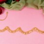 The bottom edge is frequently adorned with tiny dangling charms, beads, or bells (ghungroos), which provide style and a rhythmic sound.